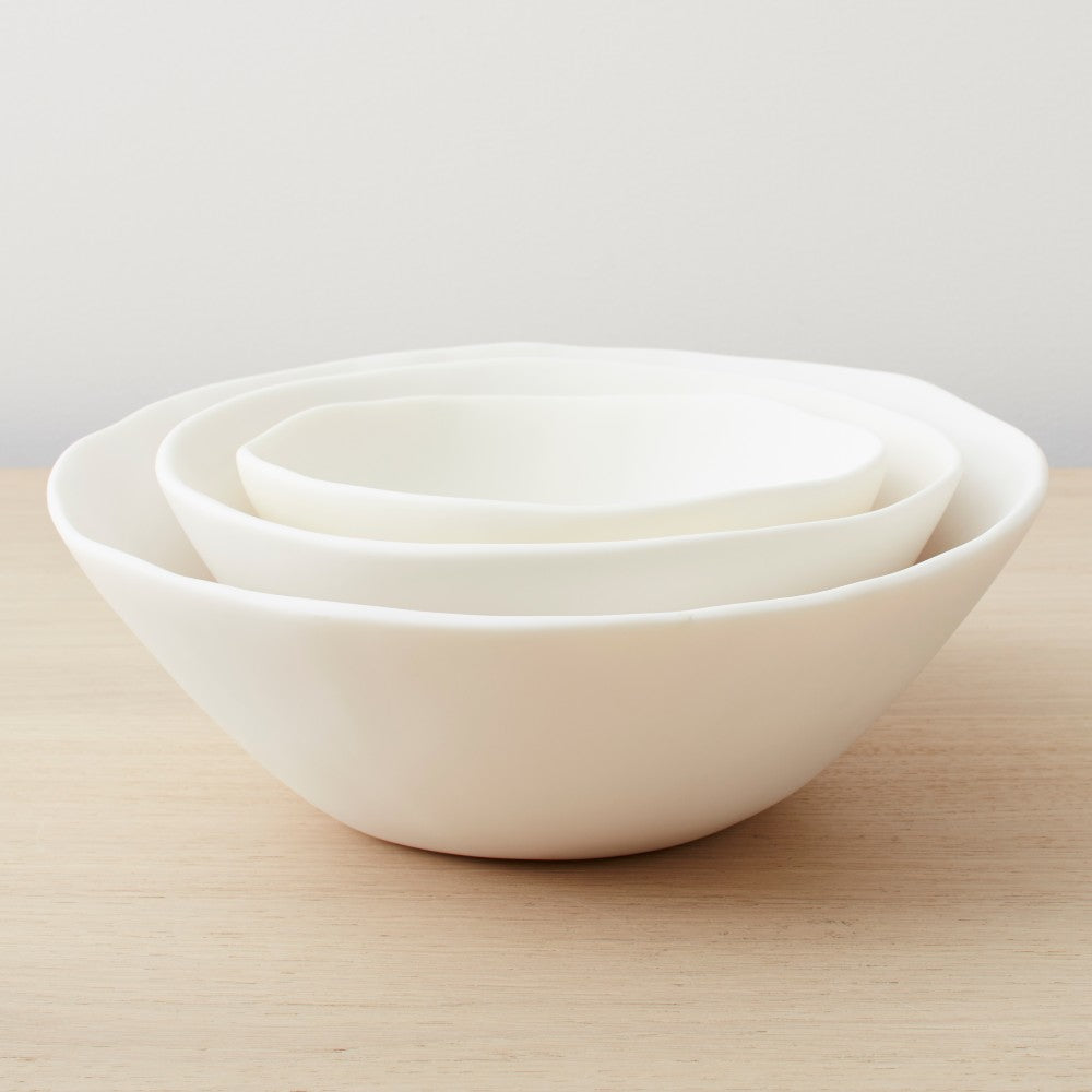 Organically-shaped serving bowls by Tina Frey Designs. The designs are made of lead and BPA free food safe resin. Each piece is handmade, handcast, and hand finished with care resulting in unique variations in each item.
