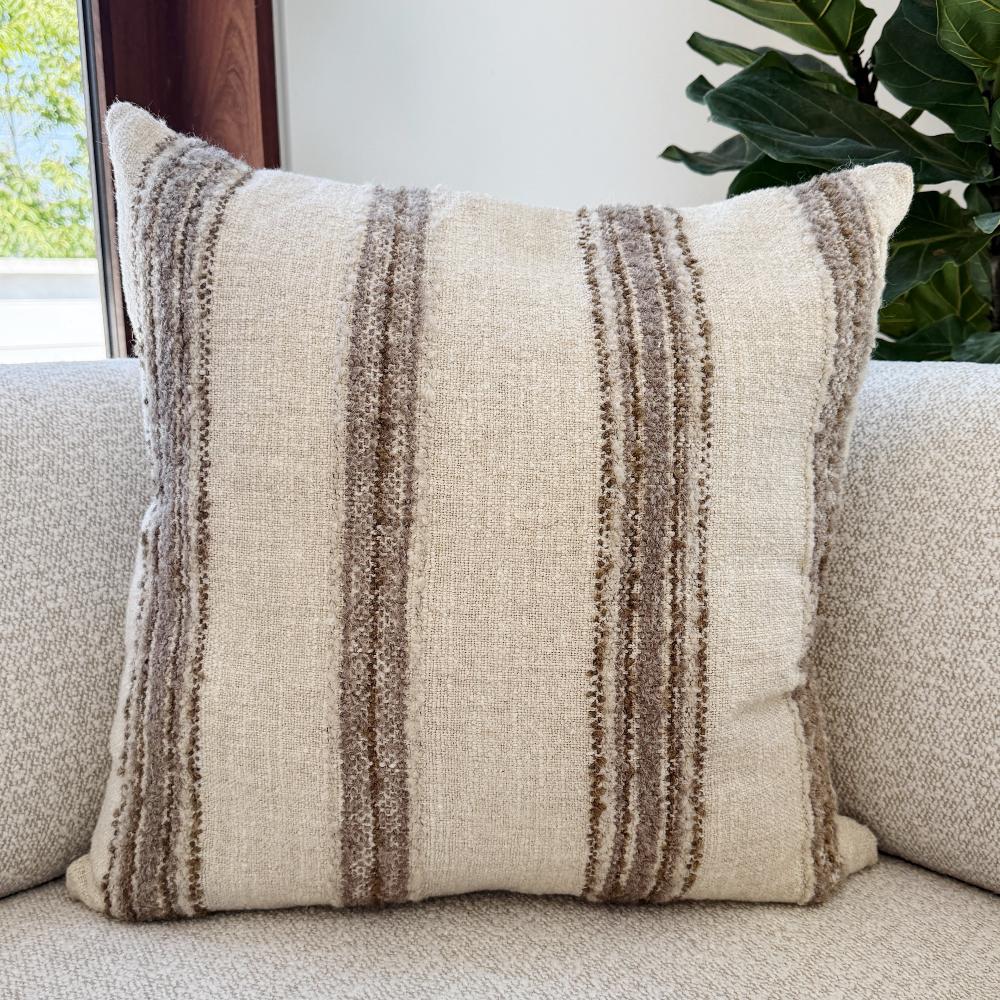Woven in Belgium this pillow is a fun combination of Belgian linen and wool. The addition of the raised stripe in this design makes for a truly unique textile. Matching throw also available.