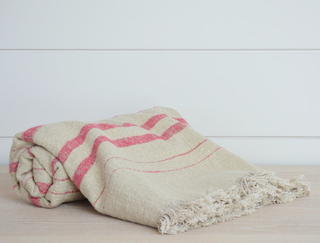 Woven in Belgium using traditional weaving techniques, Nate features a Belgian Linen warp and alternating Belgian Linen/Mixed Fiber weft. The alternating wefts create a stripe that plays with both texture and color.