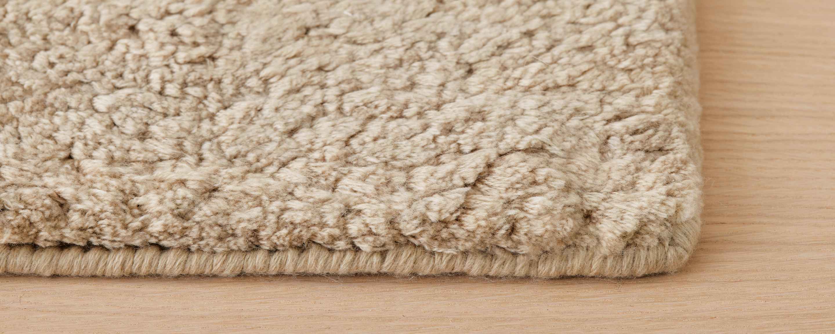 The Acadia Desert rug is handspun merino wool and is a great option for a quietly luxurious upgrade from the customary merino flat weave.