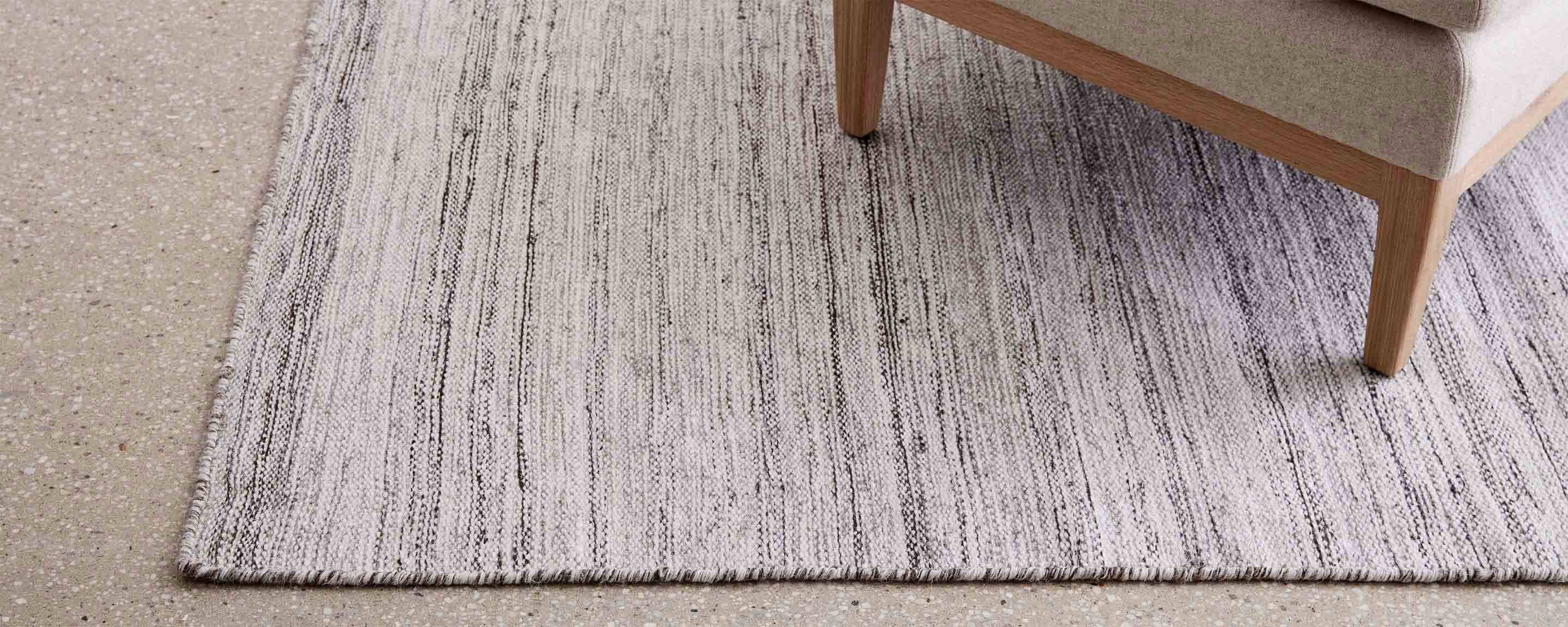 The slight striped pattern was created by weaving three colors of natural highland Tibetan wools together. Available sizes: 4'x6' |