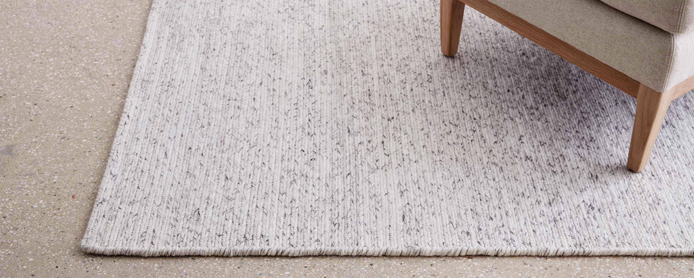New Zealand wool is felted before weaving to make the Acadia Stone rug extra soft. The texture of the twisted creamy white yarn is emphasized by touches of grey wool. Available sizes: 4'x6' |