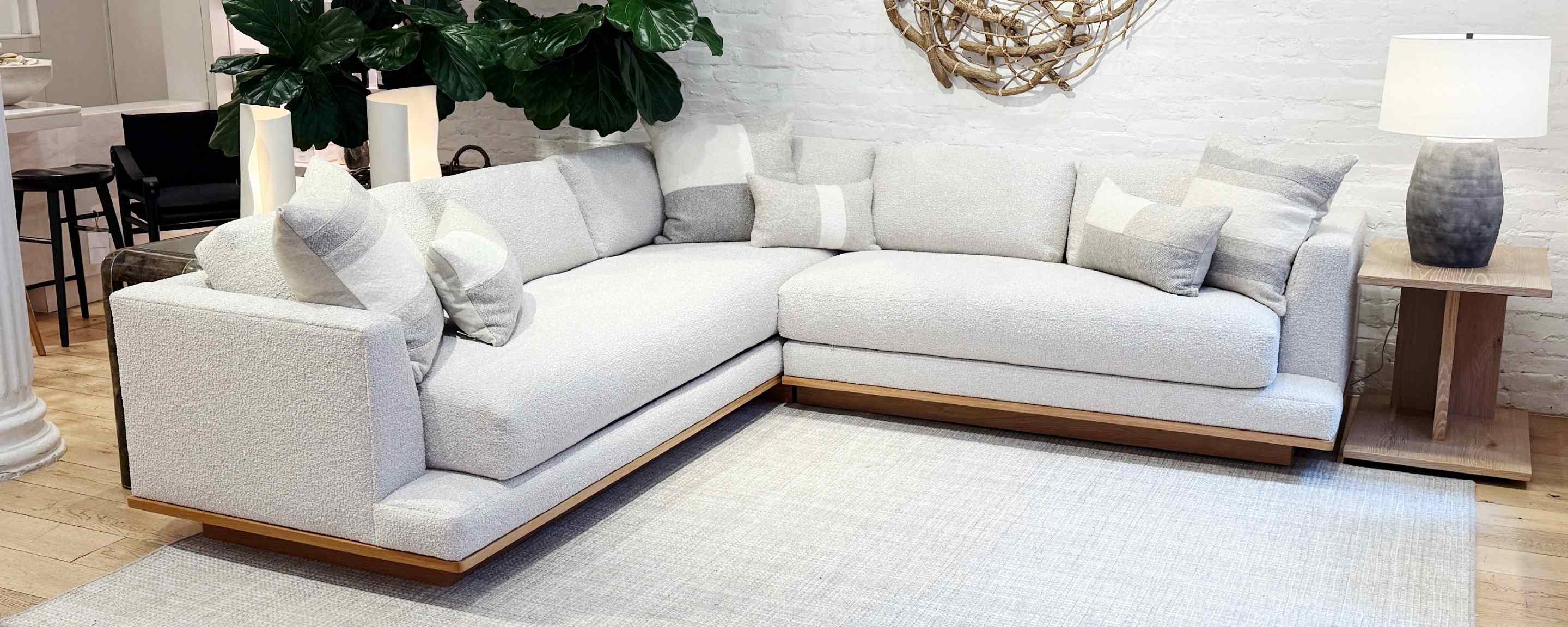 The Pond Lane platform sectional was designed to celebrate our new home at 19 Pond Lane, the gateway of the historic estate section of Southampton. Just like our neighborhood, the Pond Lane has equal parts of comfort, style and sophisticated details. The quality of construction enhances the clean lines and elegant proportions, making it easy on the eyes from all angles. The quality continues with our use of premium down and foam cushions resting on a solid white oak platform. The Pond Lane sectional is available in multiple sizes and fabrics and can also be customized to your specifications. |